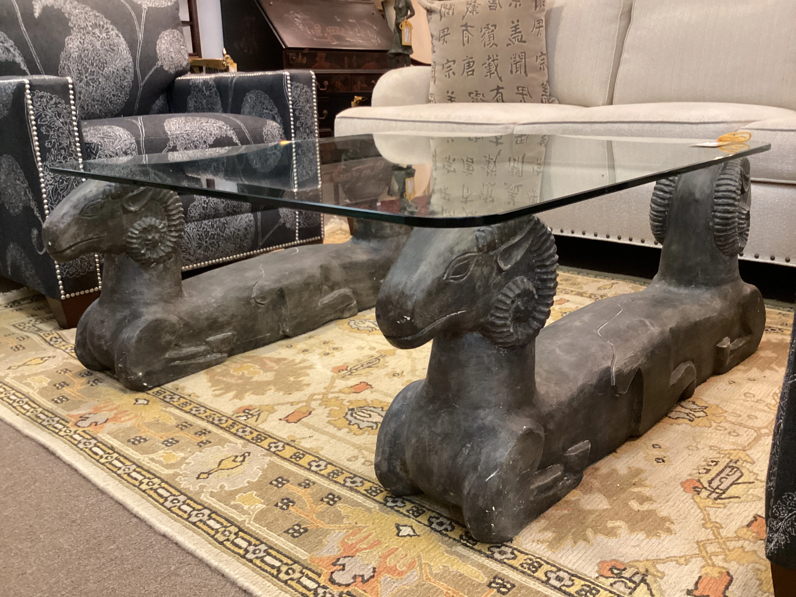 2 Rams Base Glass Top Coffee Table—